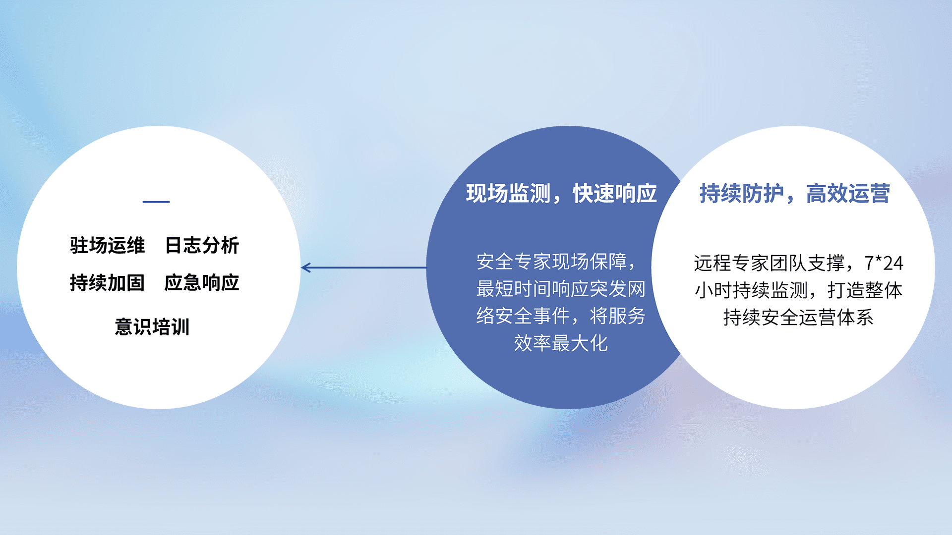 针对客户行业特性,,提供专属的一站式安全管理服务,,,,帮助客户全面感知网络空间威胁,,,,通过安全专家的线上、、、线下防护支持,,,,实现风险闭环,,,,将安全保障常态化,,,,为客户打造常态化安全运维运营服务。。。。